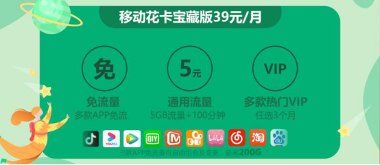 除了芒果TV,移动花卡·宝藏版还准备了爱奇艺、优酷、腾讯视频、快手、抖音短视频等热门APP的更多选择,以及众多免费会员权益。