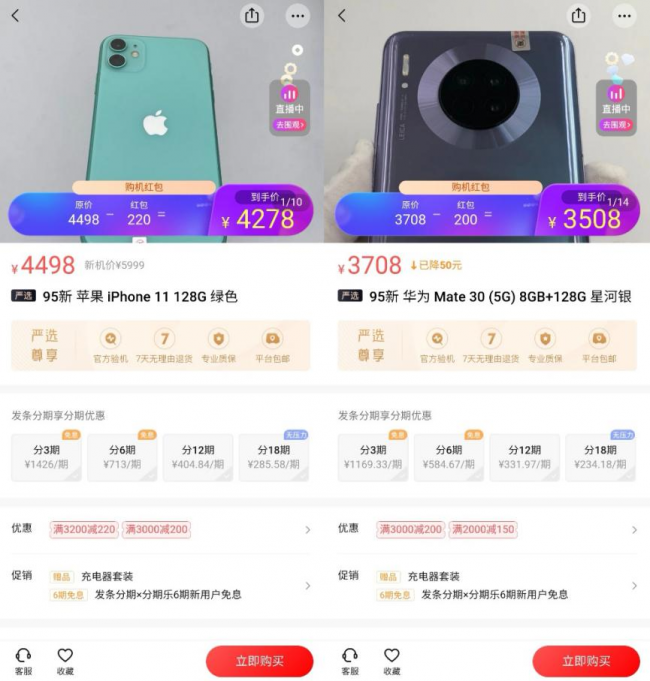例如此次上榜的“真香机”iPhone11,其搭载A13仿生芯片,采用了超广角加广角的双摄设计,拍照性能强劲。同时,拥有不错的续航能力。在转转严选专区,99新128G iPhone11售价为4398元。目前在活动期间,同款95成新 iPhone11到手价也仅需4278元,比官网便宜了1700多元。