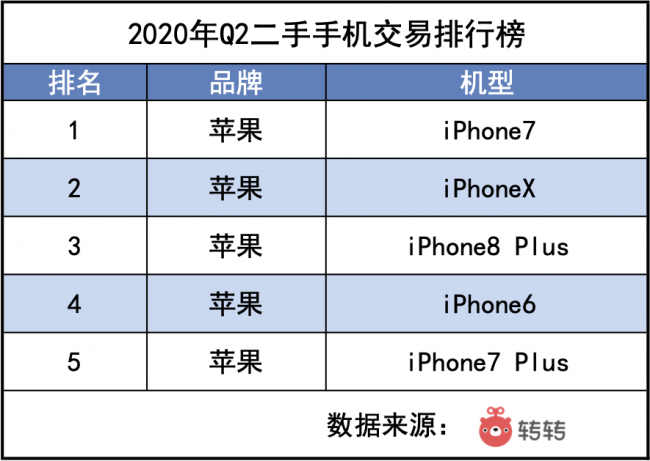 转转集团的数据显示,今年前两个季度销量Top5的二手手机均为iPhone。而且每当有新机型发布时,次新款iPhone的搜索量和交易量都会增加。