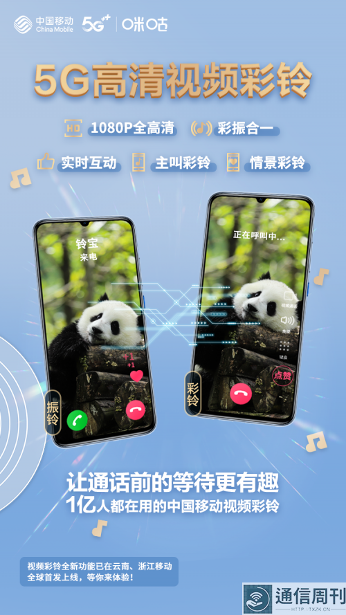 11月19日至21日,2020年中国移动全球合作伙伴大会在广州举行。本次大会以“5G融入百业 数智引领未来”为主题,旨在推动5G时代的全球产业生态创新,促进社会经济数字化转型的全面加速。大会期间,一系列5G新产品、新权益发布,中国移动视频彩铃也携五大创新功能亮相咪咕展区,并宣布已经在云南、浙江实现试点上线。