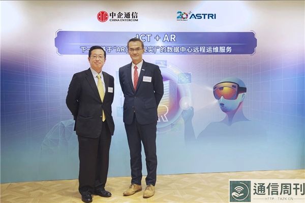 (左) 中企通信总裁李炳智先生及(右)香港应用科技研究院行政总裁周宪本先生共同宣布推出「DataHOUSE AR千里眼」 远程运维服务