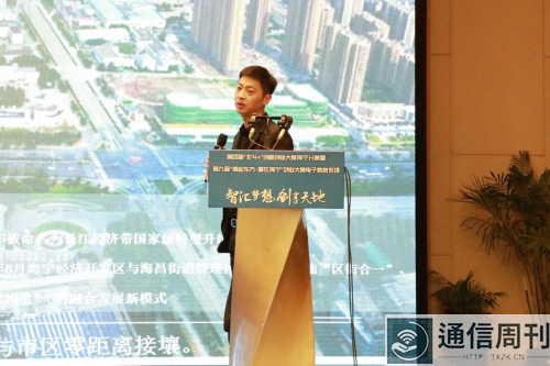 ▲ 海宁经济开发区管理委员会常务副主任张骏介绍海宁经济开发区发展情况