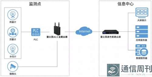 通过蒲公英4G工业路由器与蒲公英访问端成员结合的形式,将各水文监测站点现场的数据传输至信息中心平台,在操作人员和管理人员远离现场的情况下,对站点进行实时监控、远程管理和维护等。
